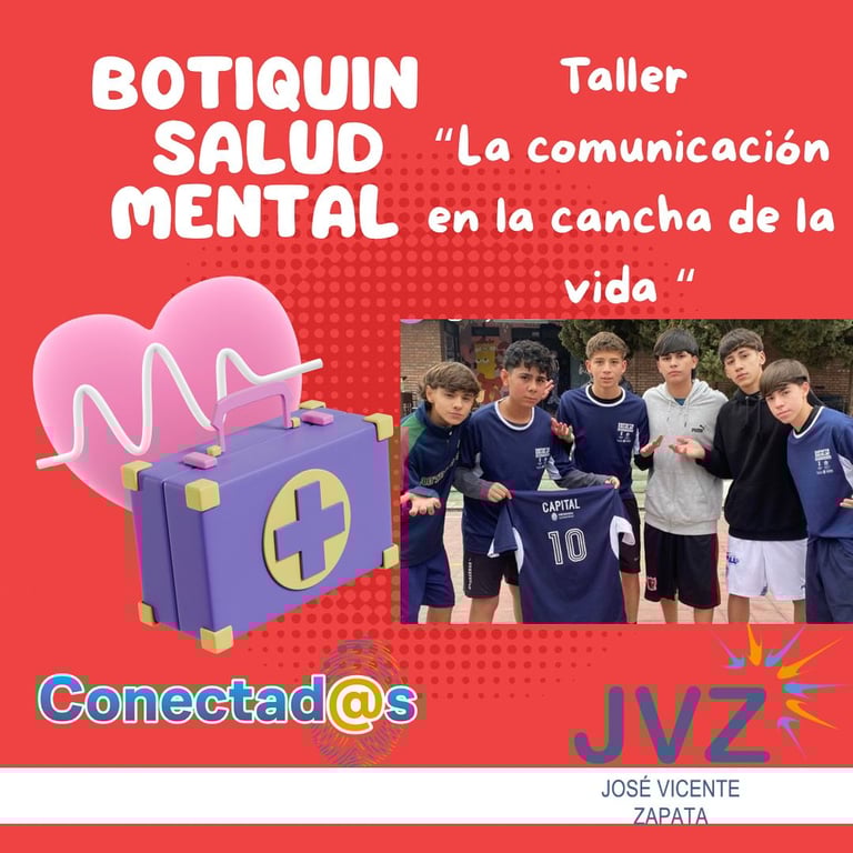 En el marco del Proyecto Educativo Institucional “Conectad@s”, la Escuela Dr. José Vicente Zapata continúa fortaleciendo los lazos entre educación, salud mental y comunidad. En esta oportunidad, junto a estudiantes de la cátedra de Salud Mental Comunitaria de la Universidad de Mendoza, se está llevando adelante el taller “¡Conectando Jugadas: La Comunicación en la Cancha de la Vida!”, destinado a estudiantes federados de nuestra institución.