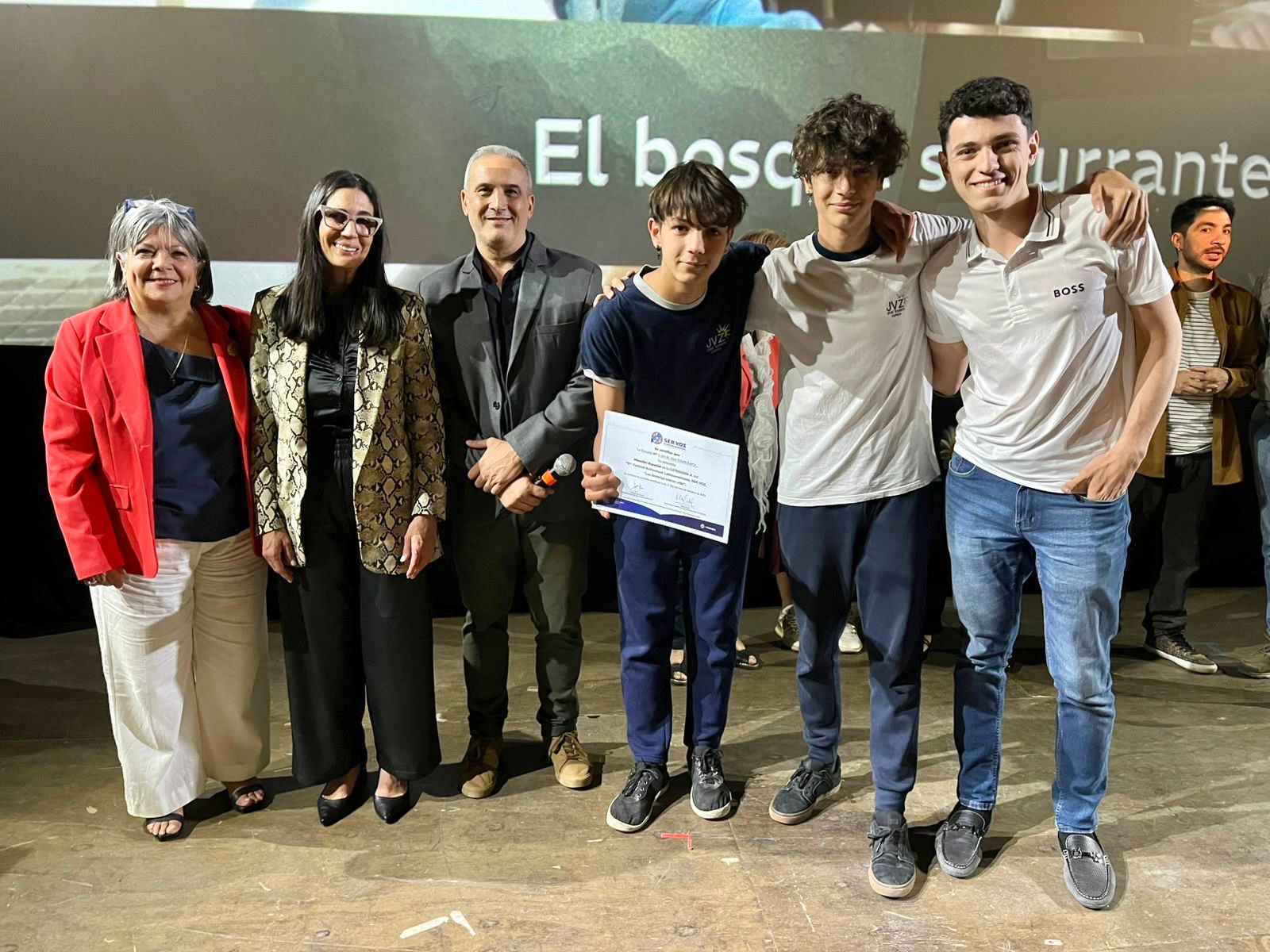En la ceremonia de premiación estuvieron presentes el director Facundo, el subdirector Juan y el tallerista y ex egresado Joel, quienes acompañaron con orgullo a los jóvenes realizadores.