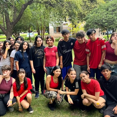 La actividad se llevó a cabo en el Parque General San Martín, donde los chicos de primero 1.ª y 2.ª del núcleo y primero 1.ª del anexo compartieron una jornada llena de juegos, propuestas recreativas y desafíos especialmente pensados para favorecer el encuentro, la integración y la construcción de vínculos dentro de la comunidad educativa.