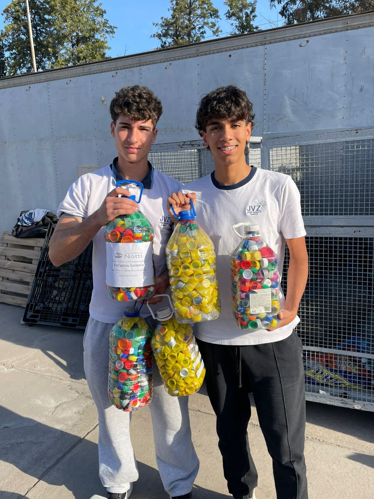 Enzo y Thomas, estudiantes de 5.º año del Bachiller en Ciencias Naturales, lideraron en la escuela una colecta de tapitas plásticas para las Voluntarias del Hospital Notti. Lo reunido se recicla y se transforma en recursos para pacientes pediátricos (insumos de higiene, juguetes y materiales). La iniciativa fortaleció la solidaridad, la conciencia ambiental y el compromiso comunitario; gracias a toda la comunidad y a Teresita por la convocatoria.
