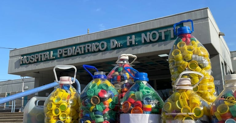 Las tapitas plásticas, una vez recicladas, se convierten en fondos para adquirir insumos de higiene 🧴🧼, juguetes 🧸 y materiales 📝 destinados a pacientes pediátricos.