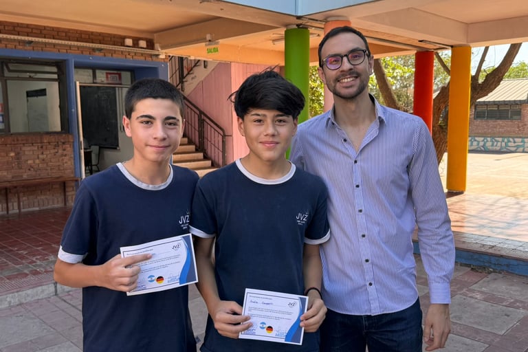 La Escuela Dr. José Vicente Zapata realizó la entrega de certificados del Laboratorio de Idiomas, reconociendo a los estudiantes que completaron los cursos de francés, alemán y portugués dentro del programa “Conectados”.