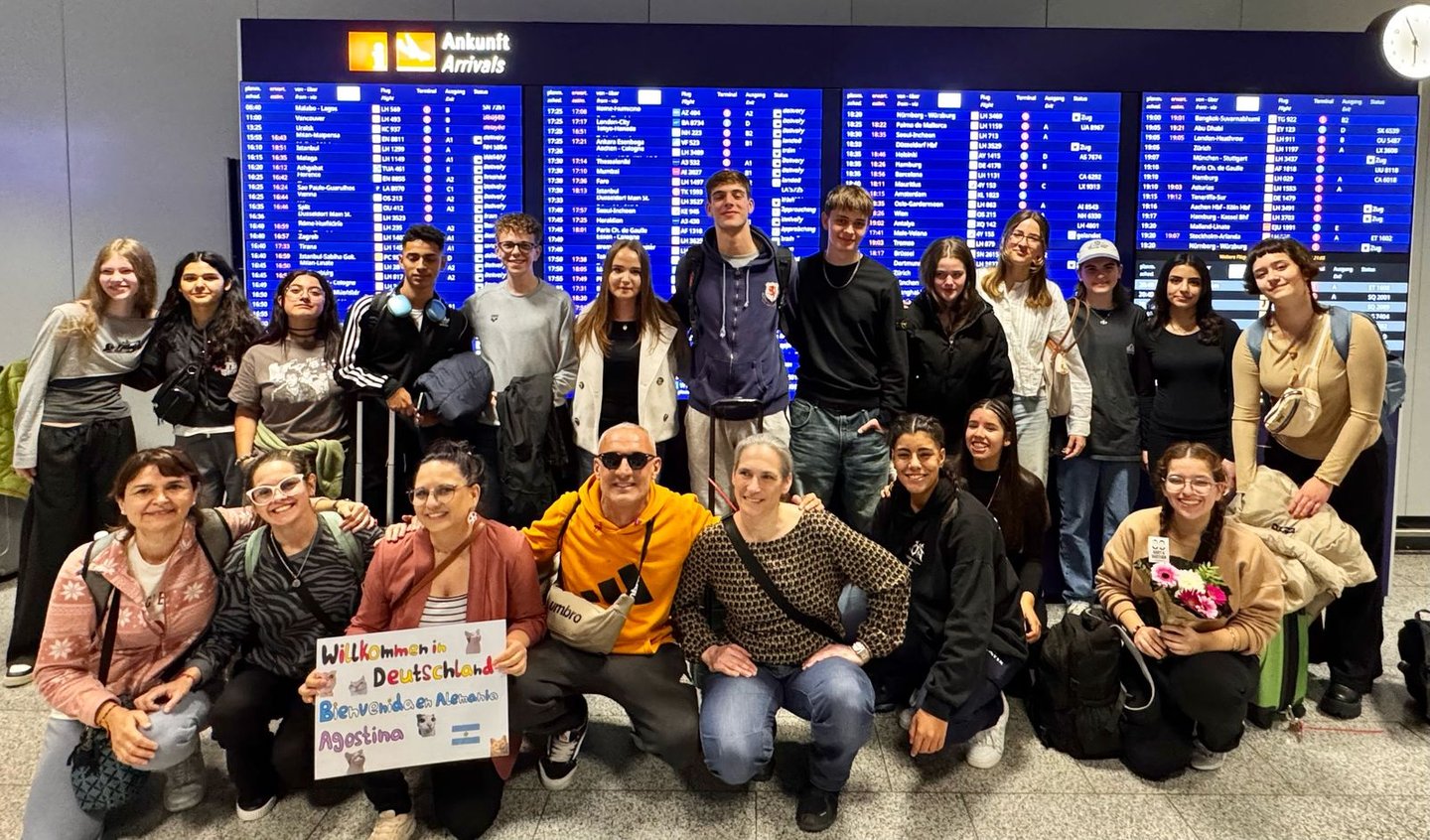 Nuestra aventura comenzó en la ciudad de Reinheim, cerca de Frankfurt, donde fuimos recibidos por la Escuela Dr. Kurt Schumacher. Allí nuestros alumnos se integraron a clases de alemán, inglés y español, además de participar en talleres de economía, ciencias y artes, trabajando codo a codo con sus pares alemanes.